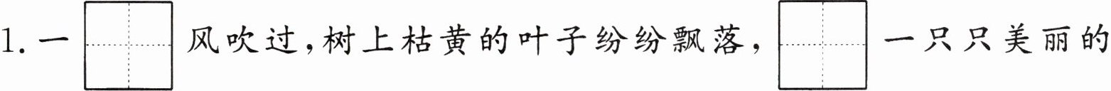 1. 一zhèn风吹过,树上枯黄的叶子纷纷飘落,xiàng一只只美丽的蝴蝶。