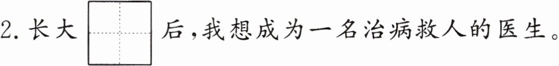 2. 长大 $\begin{array}{|c|}\hline yǐ \\ \hline & \\ \hline \end{array}\\ \hline & \\ \hline $ 后,我想成为一名治病救人的医生。