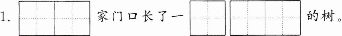 1. $\begin{array}{|c|c|}\hline lín & jū \\ \hline & \\ \hline \end{array}\\ \hline & \\ \hline $ 家门口长了一 $\begin{array}{|c|}\hline kē \\ \hline & \\ \hline \end{array}\\ \hline & \\ \hline $ $\begin{array}{|c|c|}\hline qí & guài \\ \hline & \\ \hline \end{array}\\ \hline & \\ \hline $ 的树。
