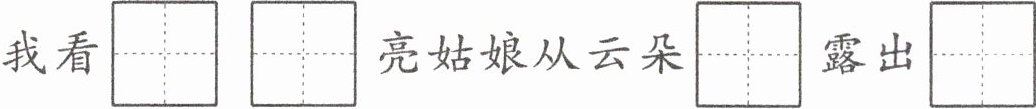 我看$\begin{array}{|c|}\hline jiàn \\ \hline \end{array}\\ \hline $$\begin{array}{|c|}\hline yuè \\ \hline \end{array}\\ \hline 亮姑娘从云朵\begin{array}{|c|}\hline lǐ \\ \hline \end{array}\\ \hline 露出\begin{array}{|c|}\hline tóu \\ \hline \end{array}\\ \hline $