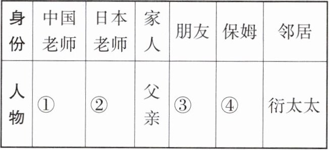|身 份|中国老师|日本老师|家 人|朋 友|保 姆|邻 居|