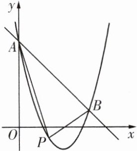 8. (2024 江苏徐州)如图,$A$,$B为一次函数y = -x + 5的图象与二次函数y = x^{2} + bx + c$的图象的公共点,点$A$,$B的横坐标分别为0$,$4$。$P为二次函数y = x^{2} + bx + c$的图象上的一动点,且位于直线$AB$的下方,连接$PA$,$PB$。