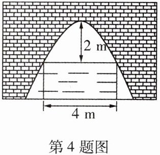 4. (2024 喀什地区二模) 如图是抛物线形拱桥,当拱顶离水面 2 m 时,水面的宽度为 4 m。若水面再上升 1.5 m,则水面的宽度为