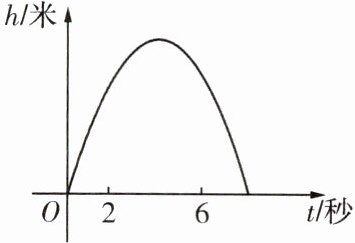 1. (2023 澄海期末) 竖直向上发射的小球的高度 $ h $(米)关于运动时间 $ t $(秒)的函数表达式为 $ h = at^{2} + bt $,其图象如图所示。若小球在发射后第 2 秒与第 6 秒时的高度相等,则下列时刻中,小球的高度最高的是(
