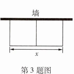 3. (2023 商河期末) 如图,某村要建一个长方形的养鸡场,且一边靠墙(足够长),如果用 60 m 长的篱笆围成中间有一道篱笆的养鸡场,设养鸡场的长为 $ x $ m,当 $ x = $