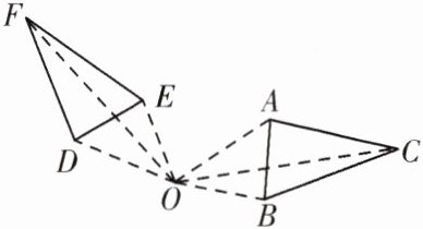 (2)如图,$\triangle ABC$ 绕着点 $O$ 旋转到 $\triangle DEF$ 的位置,则旋转中心是