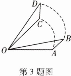 3. 如图,将 $\triangle AOB$ 绕点 $O$ 按逆时针方向旋转 $45^{\circ}$ 后得到 $\triangle COD$,若 $\angle AOB = 15^{\circ}$,则 $\angle AOD$ 的度数是