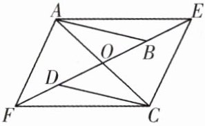 例5 (2024温州二模)如图,△AOB绕点O旋转180°得到△COD,点A的对应点为点C。分别延长OB,OD至点E,F,且BE= DF,连接AF,FC,CE,EA。