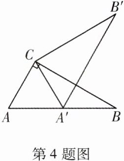 4. (2024巫山期末)如图,在Rt△ABC中,∠ACB= 90°,∠B= 30°,将△ABC绕点C逆时针旋转得到△A'B'C',此时点A'恰好落在AB上,若点B'与点B之间的距离为5√{3},则AC=