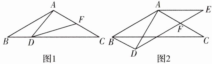 (2)如图2,连接AD,将AD绕点A逆时针旋转到AE,使∠DAE= ∠BAC,连接DE,DE恰好过点F。若DF= 2EF,证明:∠ABD+2∠AFD= 180°。