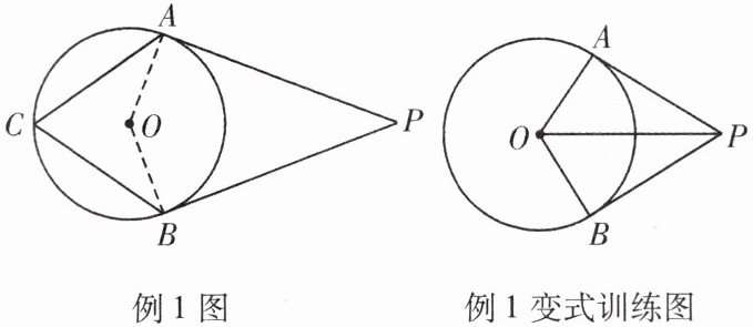 例1 如图,PA,PB分别切⊙O于A,B两点,∠P= 40°,则∠C的度数为