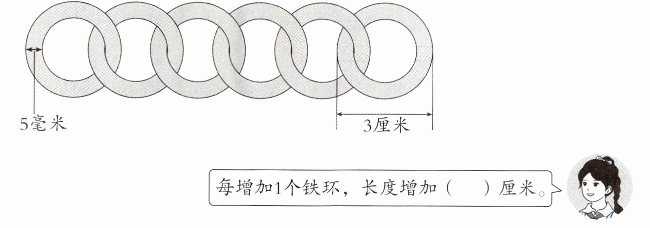 6. 有一些大小相同的铁环连在一起,拉紧后如下图。这6个铁环连在一起有多长?