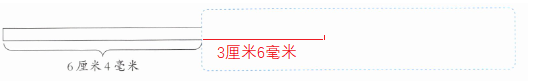 那么被遮住部分长度为:10 - 6.4 = 3.6(厘米),3.6厘米 = 3厘米6毫米。
