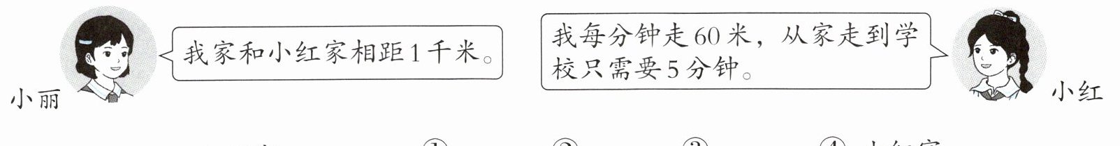 小丽:我家和小红家相距1千米。