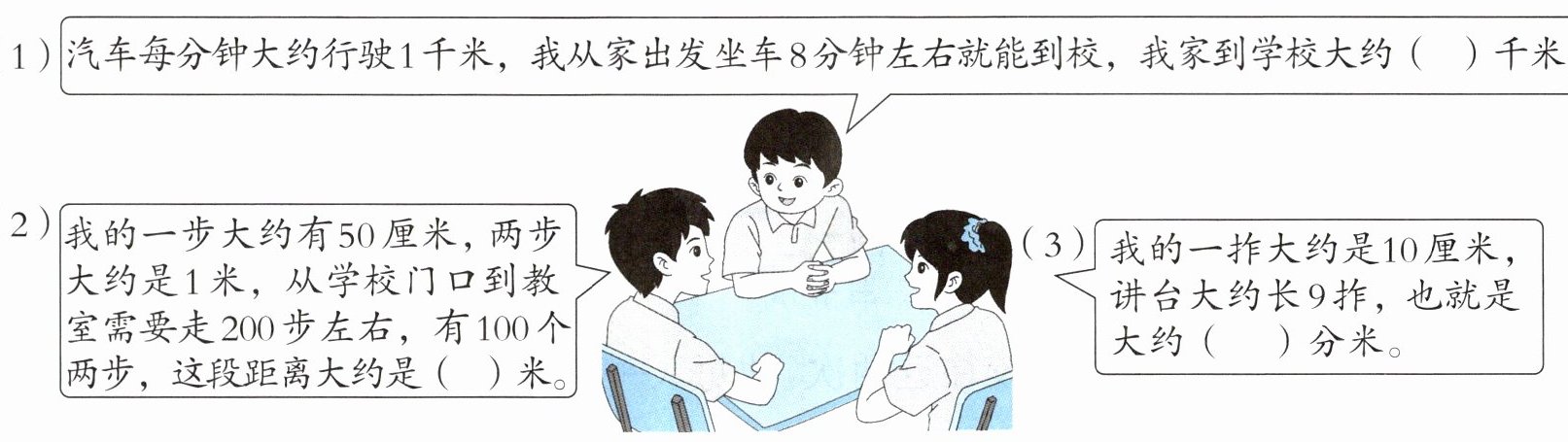 (3) 我的一拃大约是10厘米,讲台大约长9拃,也就是大约(