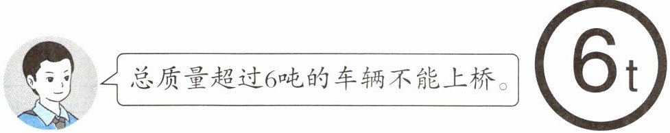 3. 张叔叔开着卡车帮工厂送货,卡车自身的质量是 3 吨,张叔叔体重为 80 千克,车上装有 2 吨牛奶和 800 千克花生。过桥前张叔叔看到了下图中的桥梁限重标志,他可以继续过桥吗?