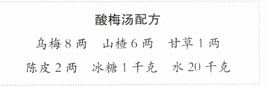 2. 王阿姨在市场上卖酸梅汤,下面是她的配方。