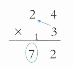 $\begin{array}{r}2\ 4 \\×\ \ \ 3 \\\hline\fbox{7}\ 2 \\\end{array}$