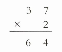 $\begin{array}{r}3\ 7 \\×\ \ \ 2 \\\hline6\ 4 \\\end{array}$