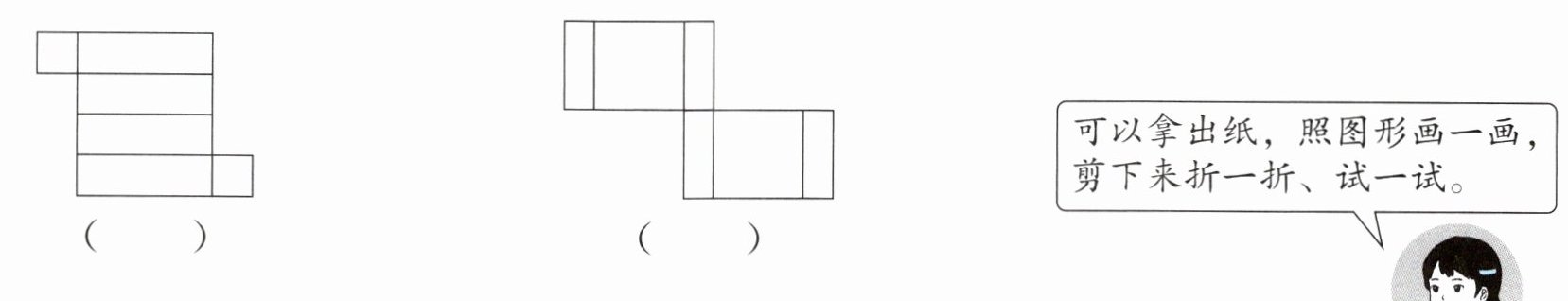 (1) 在能折成长方体的图形下面的( )里画“√”。
