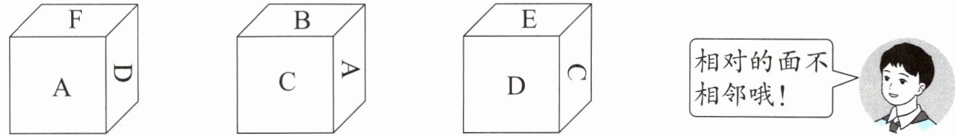6. 有一个正方体,六个面上分别写着 A、B、C、D、E、F。有 3 人从不同的方向观察该正方体,看到的结果如下。