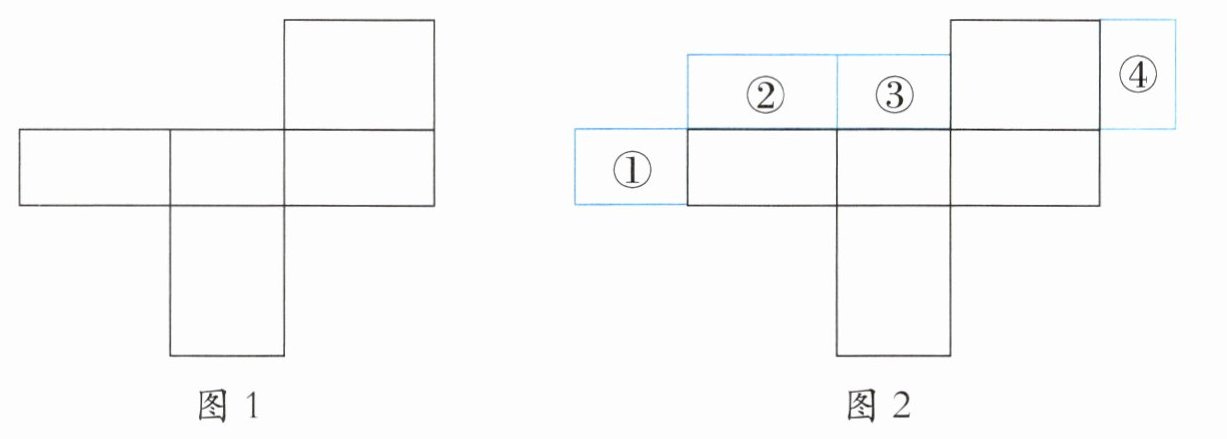 5. 一个长方体展开后的图形有 6 个面。图 1 呈现了其中的 5 个面,现需从图 2 中的①~④这几个面中,选择一个合适的面,使得图 1 能够成为一个完整的长方体展开图形,那么这个面可以是(