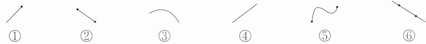 1. 下面的图形,( )是线段,( )是射线,( )是直线。(填序号)