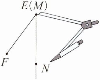 1. 用圆规比较线段 $ MN $ 和线段 $ EF $ 的长短(如图),点 $ M $ 与点 $ E $ 重合,先将圆规有针尖的脚固定在点 $ E $ 处,另一只脚与点 $ F $ 重合,再转动手柄将另一只脚旋转到射线 $ MN $ 上。(填“$ > $”“$ < $”或“$ = $”)