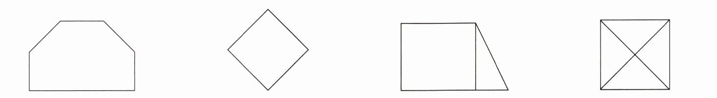 2. 数一数下面的图形中各有几个直角,并用直角符号“┐”标出来。