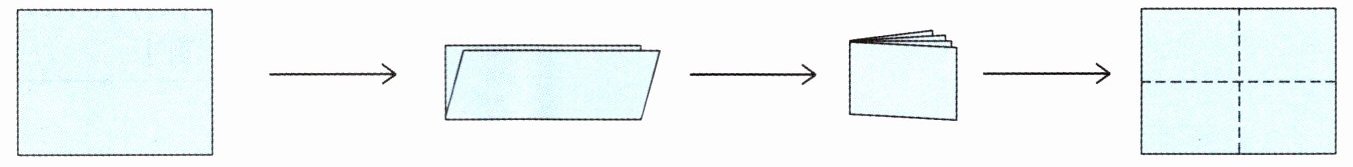 4. 一张长方形纸有 4 个直角,将一张长方形纸连续折叠两次,展开后,结合折叠的痕迹,一共可以找到(