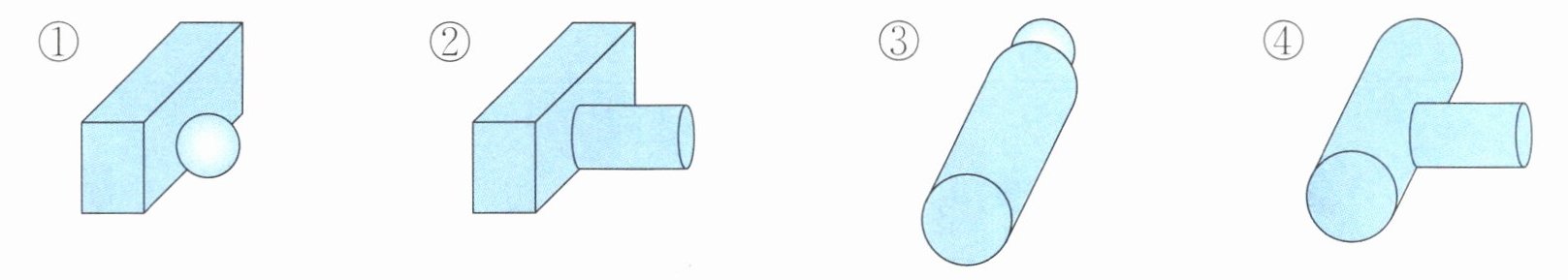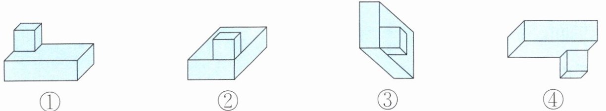 (2) 上面四组图形中,从前面看到的是两个长方形,从上面看到的也是两个长方形的是( )。(填序号)