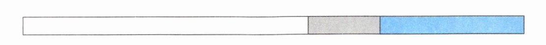 3. 小刚把一张白色纸条分成了三部分,把其中两部分分别涂上灰色和蓝色(如下图)。其中,没有涂色的部分的长度占纸条全长的 $\frac{4}{7}$。