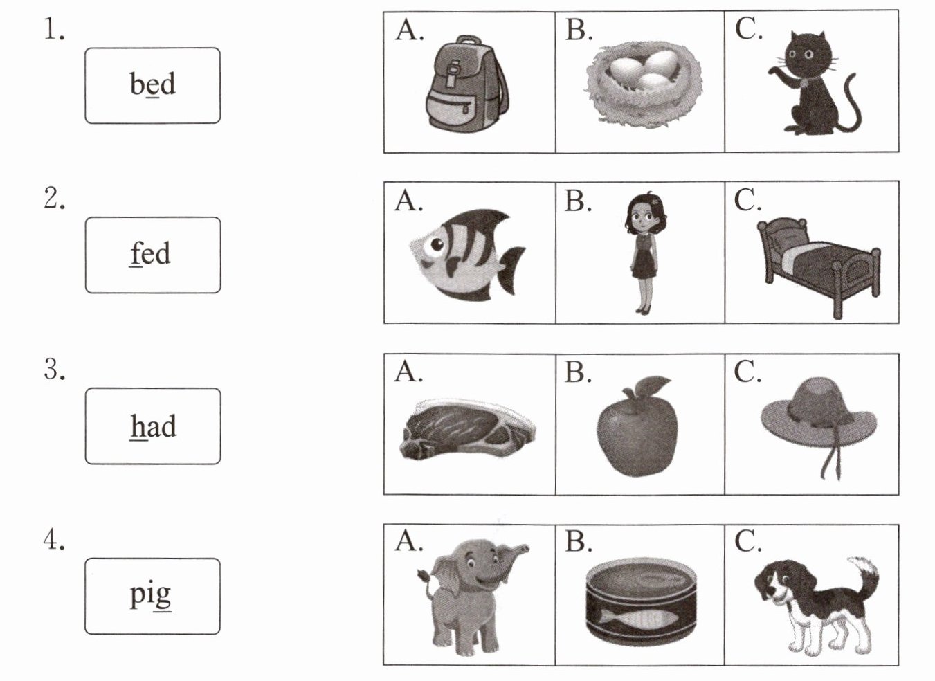 看图,说一说并圈出含有画线字母发音的单词图片。