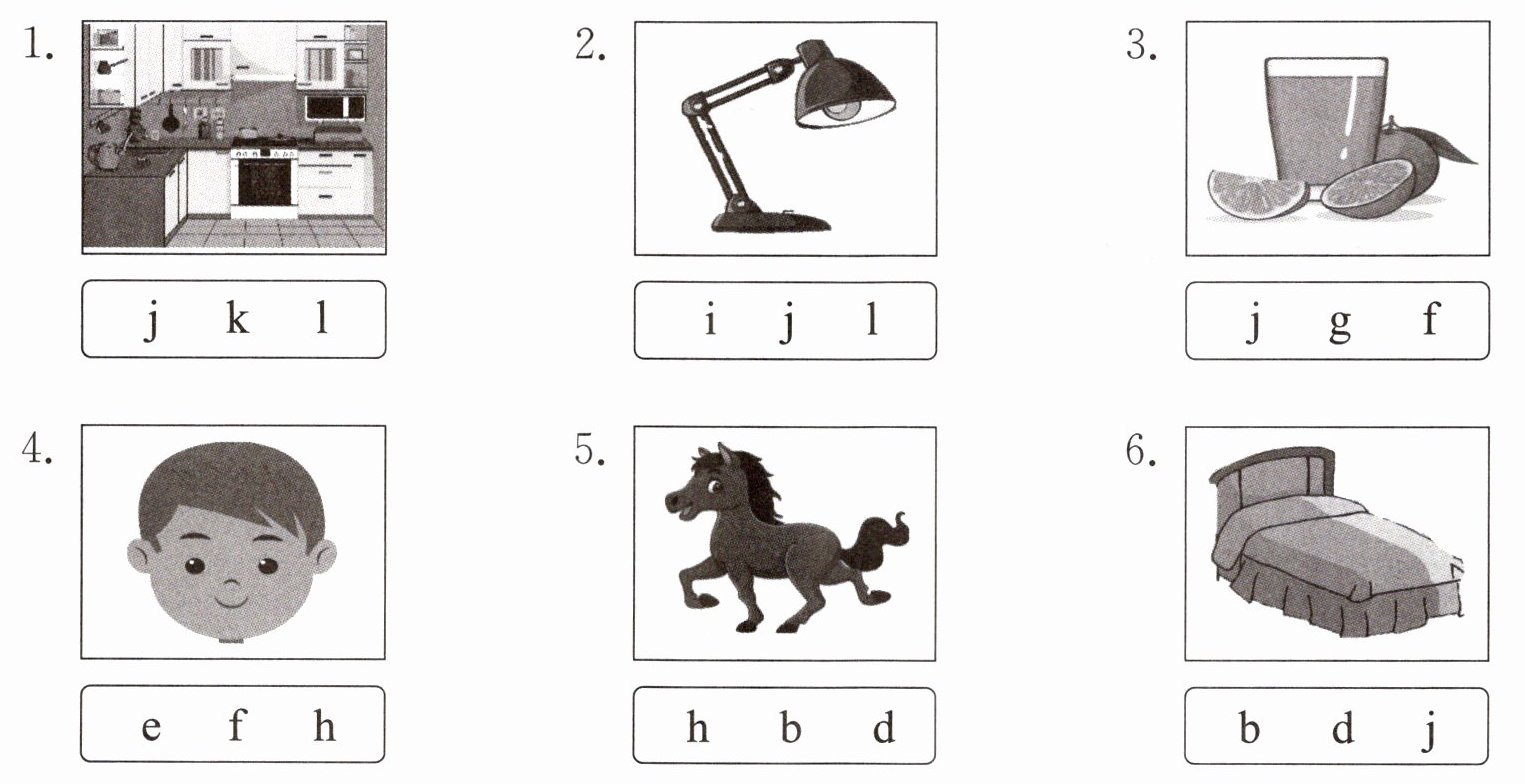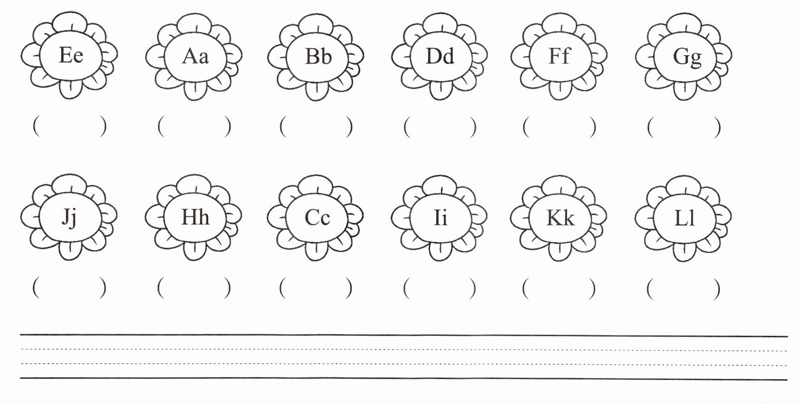 看一看,把以下字母按照字母表顺序排队,并写出排好队的字母大小写形式。