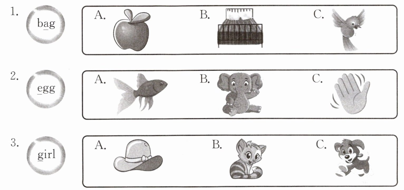 看图,说一说并圈出含有画线字母发音的单词图片。