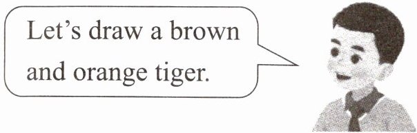 - 老虎(tiger)涂棕色(brown)和橙色(orange)。