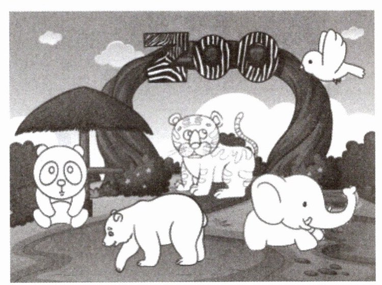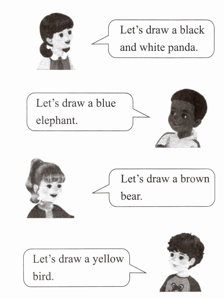 - 熊猫(panda)涂黑色(black)和白色(white)。
