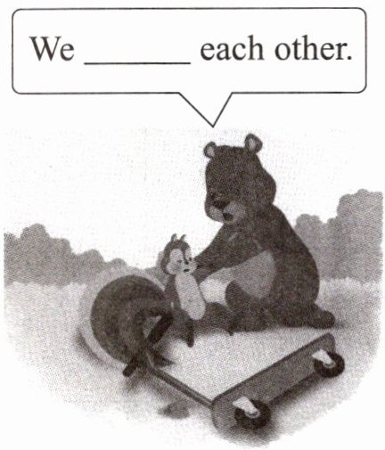 看图选词并说一说。