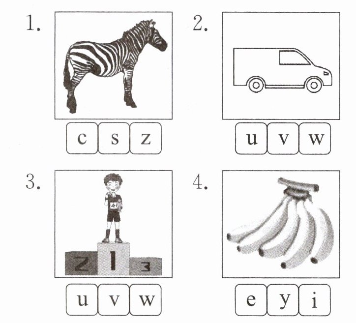 听音,圈出听到单词的首字母。