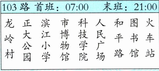七、下面是某市的公交站牌,根据站牌内容完成练习。(4分)