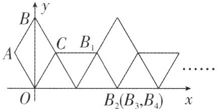 13 (重庆自主招生)如图,在平面直角坐标系内放置一菱形 $OABC$,已知 $\angle ABC = 60^{\circ}$,$OA = 2$。先将菱形 $OABC$ 沿 $x$ 轴的正方向无滑动旋转,每次旋转 $60^{\circ}$,连续旋转 $999$ 次,点 $B$ 的落点依次为 $B_1$,$B_2$,$B_3$,…$$,则点 $B_{999}$ 的坐标为