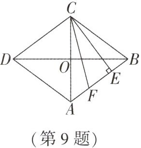 9 (重庆自主招生)如图,在菱形 $ABCD$ 中,对角线 $AC$ 与 $BD$ 交于点 $O$,$CE \perp AB$ 于点 $E$,$F$ 为线段 $AE$ 上一点,若 $AC = 6$,$BD = 8$,$AF = \frac{4}{9}AE$,则线段 $CF$ 的长度为(