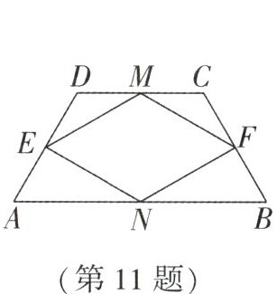11 如图,在梯形 $ABCD$ 中,$AB // CD$,$AD = BC = CD = 2$,$\angle B = 60^{\circ}$,$M$,$N$,$E$,$F$ 分别是四边中点,则四边形 $MENF$ 的周长为