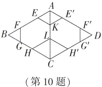 10 (全国初中数学竞赛)如图是以 $KL$ 所在的直线为对称轴的轴对称图形,六边形 $EFGHLK$ 的各个内角相等,记四边形 $HCH'L$、四边形 $EKE'A$、$\triangle BGF$ 的周长分别为 $C_1$,$C_2$,$C_3$,且 $C_1 = 2C_2 = 4C_3$,已知 $FG = LK$,$EF = 6$,则 $AB$ 的长是(