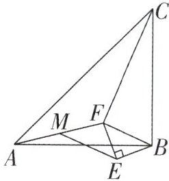 变式 2 如图,在$\triangle ABC$中,$\angle ABC = 90^{\circ}$,$BA = BC$,$\triangle BEF$为等腰直角三角形,$\angle BEF = 90^{\circ}$,$M为AF$的中点,求证:$ME= \frac{1}{2}CF$。