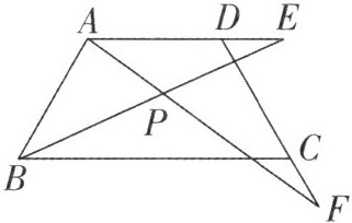例2 如图,在等腰梯形 $ABCD$ 中,$\angle DCB = 60^{\circ}$,$AD // CB$,且 $AD = DC$,点 $E$ 与点 $F$ 分别在 $AD$ 和 $DC$ 的延长线上,且 $DE = CF$,$AF$ 与 $BE$ 交于点 $P$。