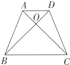 变式2 (重庆自主招生)如图,在梯形 $ABCD$ 中,$AD // BC$,$AC \perp BD$ 于点 $O$,$AB = DC$,$AD = 3$,$BC = 7$,则下列结论:① $\angle OCB = 45^{\circ}$;② $S_{\triangle AOB} = S_{\triangle OCD} = \frac{21}{4}$;③ $S_{梯形ABCD} = 25$;④ $AD$ 和 $BC$ 两平行线间的距离为 $5$。其中正确的有