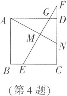4. (山西中考)如图,在正方形$ABCD$中,点$E是边BC$上的一点,点$F在边CD$的延长线上,且$BE = DF$,连接$EF交边AD于点G$。过点$A作AN\perp EF$,垂足为点$M$,交边$CD于点N$。若$BE = 5$,$CN = 8$,则线段$AN$的长为