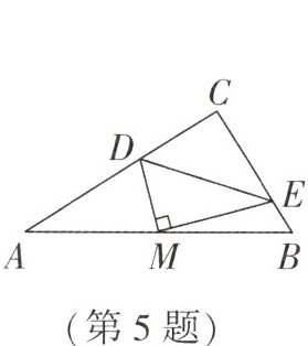 5. 如图,在$\triangle ABC$中,$\angle ACB = 90^{\circ}$,$M为AB$中点,$D$,$E分别为AC$,$BC$上的点,连接$MD$,$ME$,$DE$,$\angle DME = 90^{\circ}$,若$BE = 1$,$AD = 2$,则$DE$的长为