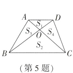 5. (武汉自主招生)如图,梯形 $ABCD$ 的对角线 $AC$,$BD$ 相交于点 $O$,$\triangle ADO$ 的面积记作 $S_1$,$\triangle BCO$ 的面积记作 $S_2$,$\triangle ABO$ 的面积记作 $S_3$,$\triangle CDO$ 的面积记作 $S_4$,则 $S_1$,$S_2$,$S_3$,$S_4$ 的关系是